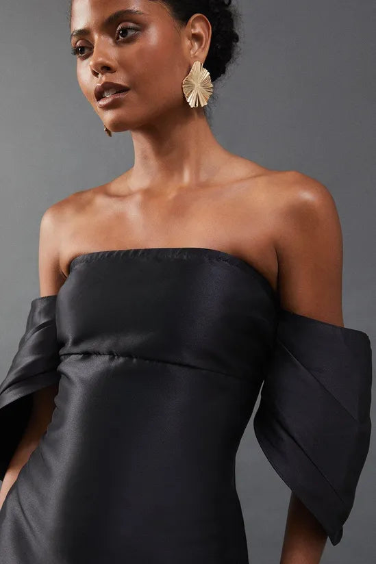 Dobby Chiffon Plunge Neck Ruffle Midi Smock Dress